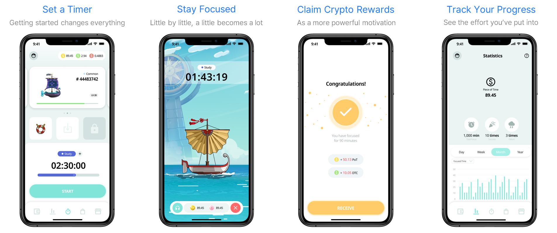 DimeTime is a productivity application that combines focus timer functionality with game-fi elements.